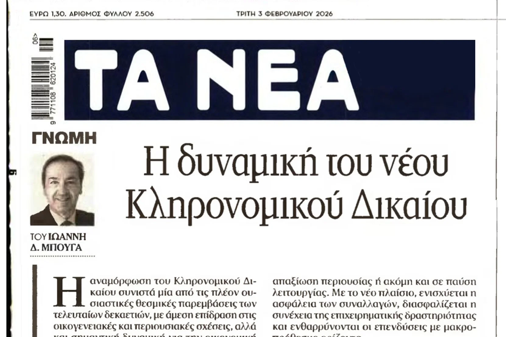 Το άρθρο δημοσιεύθηκε στην εφημερίδα «Τα ΝΕΑ» στις 03 Φεβρουαρίου 2026.